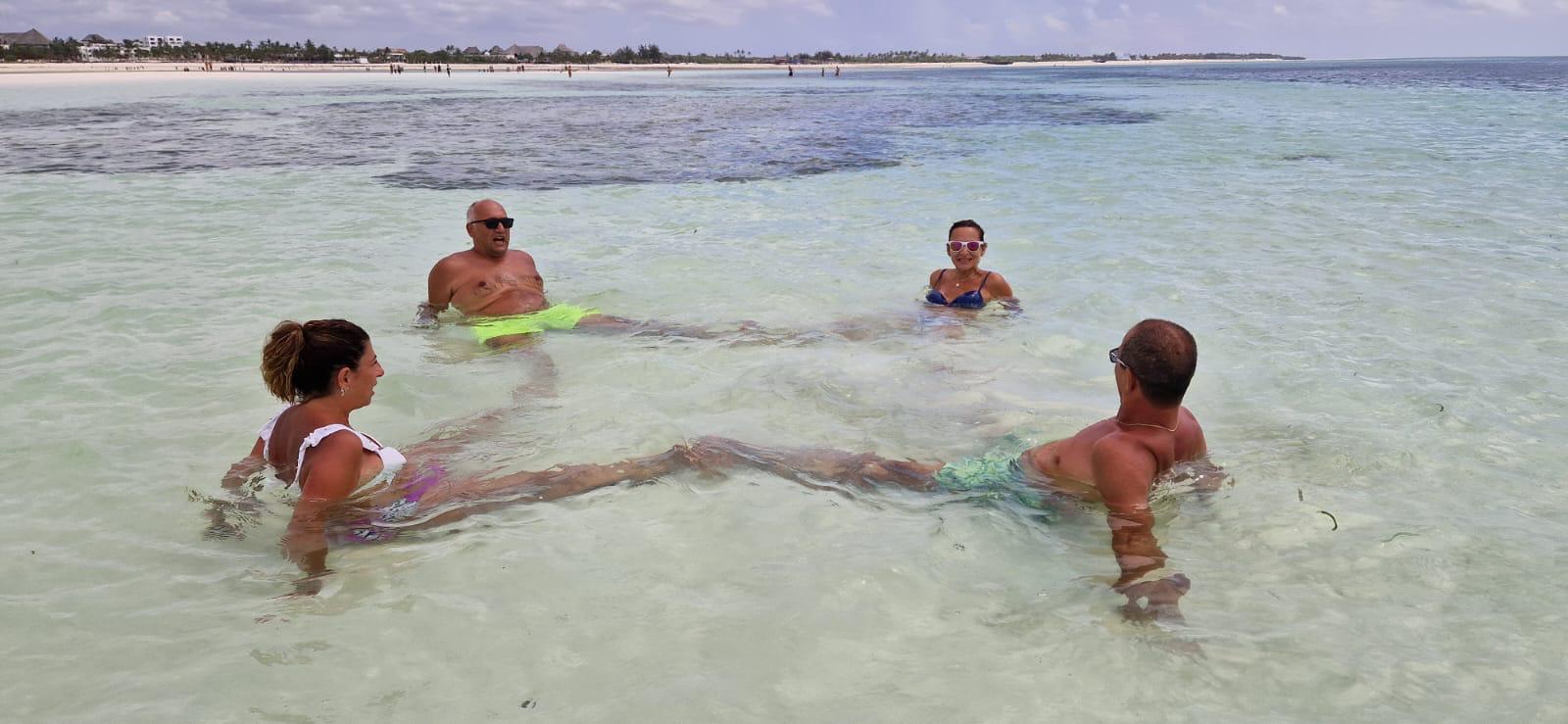 Il bianco accecante della sabbia e le mille sfumature del blu del mare interagiscono e come d'incanto emergono magiche lingue di sabbia corallina che si allargano, dando vita a piscine naturali dove ci si può immergere per una nuotata o per prendere il sole oppure per una passeggiata tra gli atolli affiorati con la bassa marea facili da raggiungere a piedi, utilizzando le apposite scarpette per camminare sui coralli.